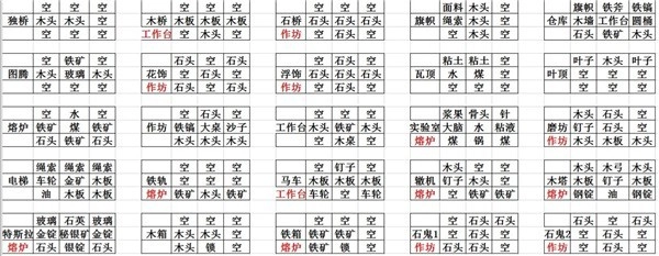 1. 桥类、熔炉、作坊等物品的合成表汇总展示