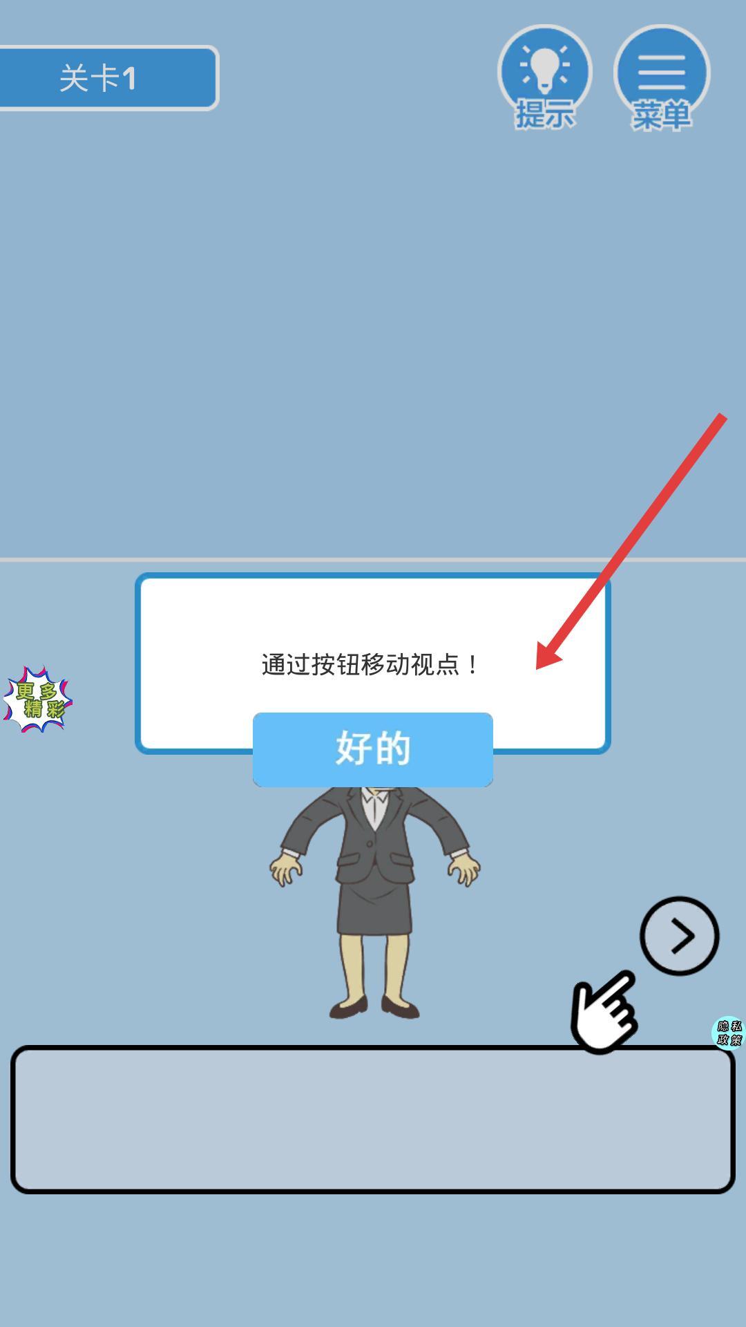 1、按照提示点击对应的按钮来移动视角、调整观察角度,这样能更清晰地查看游戏场景里的各类元素,为接下来的操作提前做好准备。