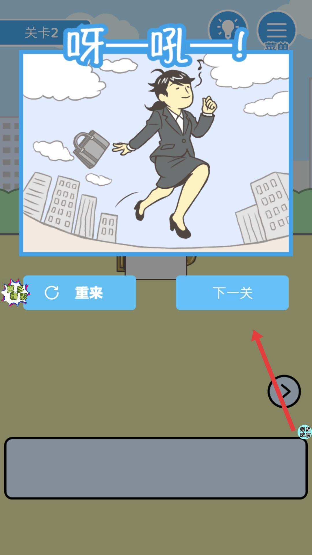 4当你成功通过当前的游戏阶段后,界面上会出现进入后续阶段的交互选项,点击这个选项就能开启新的游戏环节,继续体验不同的挑战内容。