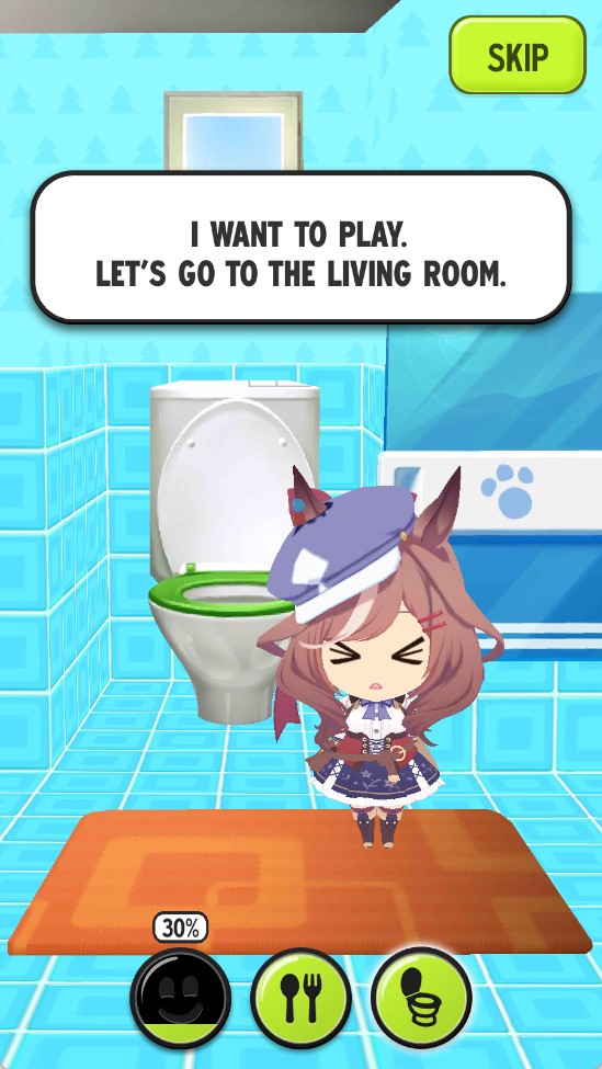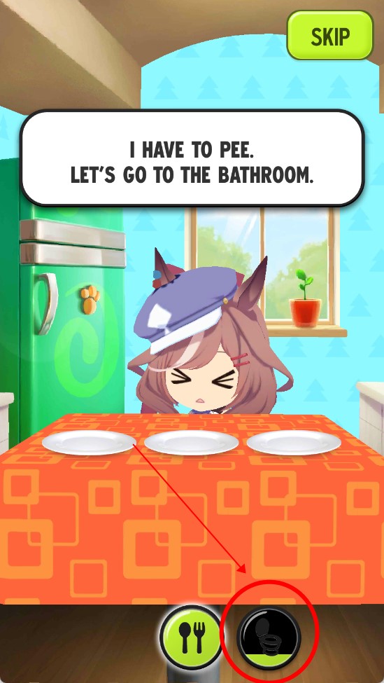 4、吃饱后的曼波需要到厕所去,点击图示标志即可。