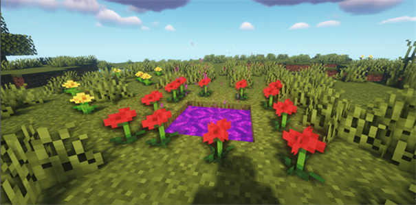 在主世界,冒险家只需造一个2×2的浅水池,周围用随手采的花朵围起来,再往水里扔颗钻石,就能看到天上劈下一道雷打在水中,传送门便完成了。跳进去,就能抵达暮色森林的世界。
