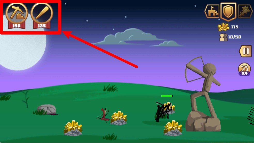 2. 战力单位召唤:左上方设有各类兵种的招募按钮,可消耗黄金招募对应单位,需灵活调配步兵与弓箭手来抵御敌人的进攻。