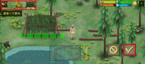 4、建造是野外生存必不可少的技能,点击左上角的斧头按钮进行建造,建造之前你需要收集所有建筑所需要的材料;