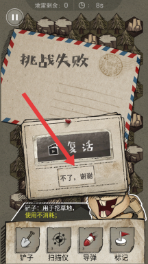 4在闯关过程中,若误触了地雷装置,系统会判定挑战未成功。此时玩家可选择通过复活机制再次尝试当前关卡;若放弃复活,则需结束本次闯关流程,重新从起始环节开启挑战。