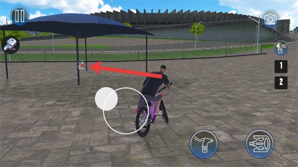2、借助右下角的刹车与油门,来操控自行车的前进和制动。
