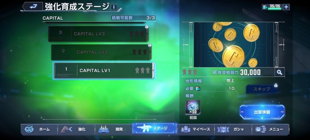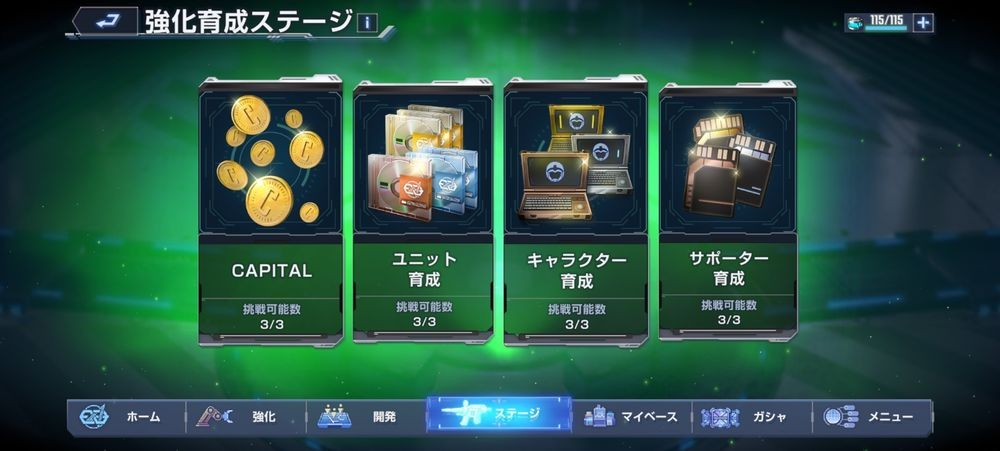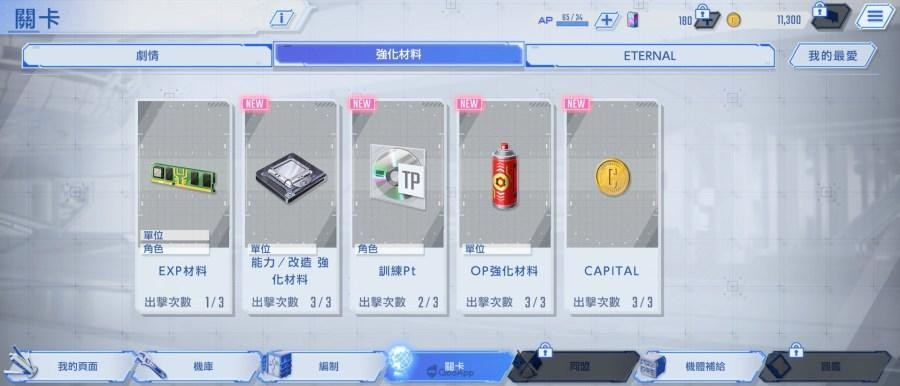 在这个关卡里能获取大量CAPITAL和各类强化材料,每种材料每天都有游玩次数的限制。 (或者另一个版本:此关卡提供大量CAPITAL与多种强化材料,每种材料设有每日可游玩的次数上限。)
