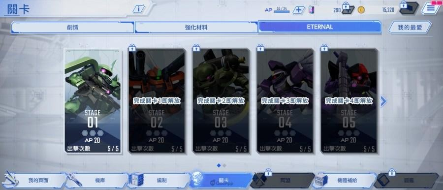 《SD钢弹 G世代 永恒》CBT的关卡部分包含《剧情》《强化材料》《ETERNAL》三类。其中,通过剧情关卡可以回溯体验《机动战士钢弹》《机动战士钢弹THUNDERBOLT》与《机动战士钢弹SEED》的相关内容。