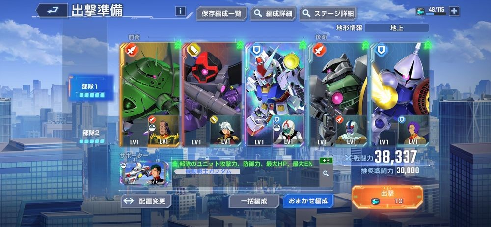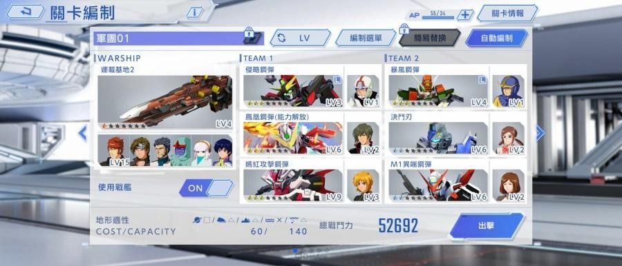 ▍《SD鋼彈 G世代 永恆》CBT戰鬥玩法 本作延續了「G世代」系列一貫的戰略回合制核心風格,玩家在進入關卡前,可通過隊伍編成環節選擇兩種軍隊類型展開挑戰:一種是以戰艦為核心的戰艦軍隊,另一種是以獨立單位為主力的游擊軍隊。前者具備每回合恢復週邊單位EN(武裝發動所需能量)、強化整體戰鬥力的特性;後者則更便於在戰場上靈活配置各單位,讓它們分頭作戰。