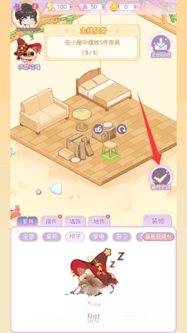 4、在你达成所有装修任务的要求之后,点击装修完成按钮,提交任务就能获取丰厚的通关星级奖励。