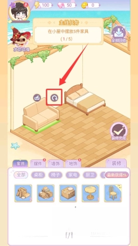 1、开启游戏后,先留意主线任务的引导提示,接着点击装修按钮,进入房间设计界面。