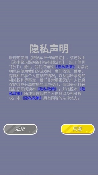 1、安装游戏后,阅读并同意游戏协议,即刻便能踏入这个充满刺激与趣味的竞速世界。
