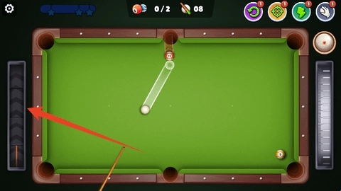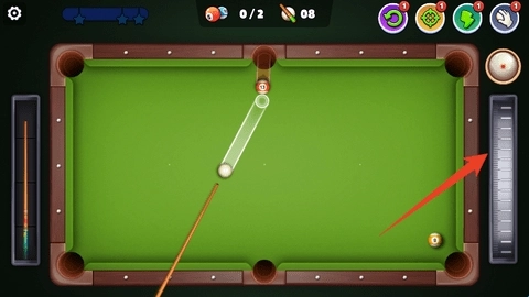 4、在屏幕左侧上下滑动球杆,可调节击球力度,松开手指即可完成击球。