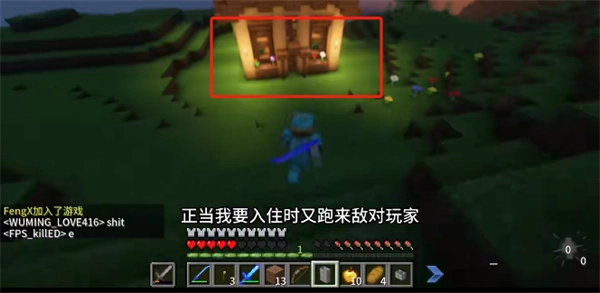 3、随着时间的慢慢度过,游戏内也会有黑夜时分,玩家需要快速的找到庇护所,如下图红框框内的房子;