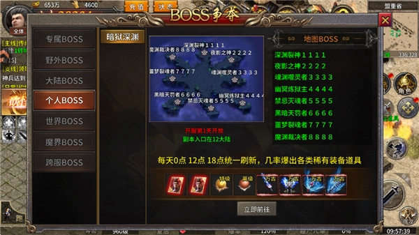 每天固定刷新4次,装备爆率是野外BOSS的50-150倍。