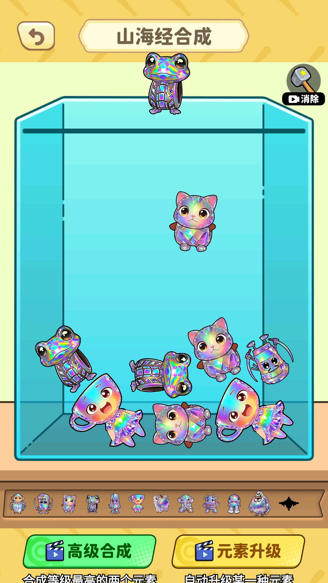 1、游戏从初级的山海经异兽开始,这些异兽是合成之路的起点,有着各自独特的外形和基础属性。