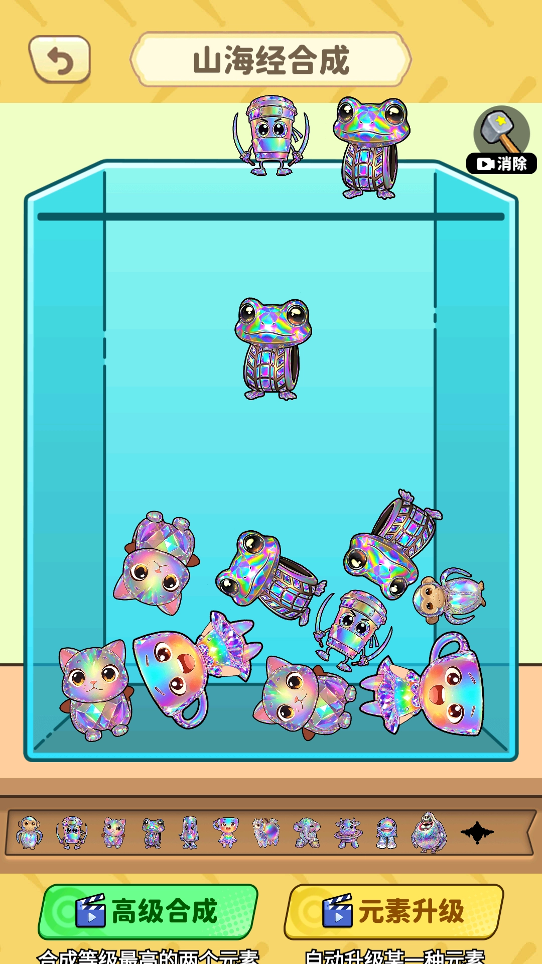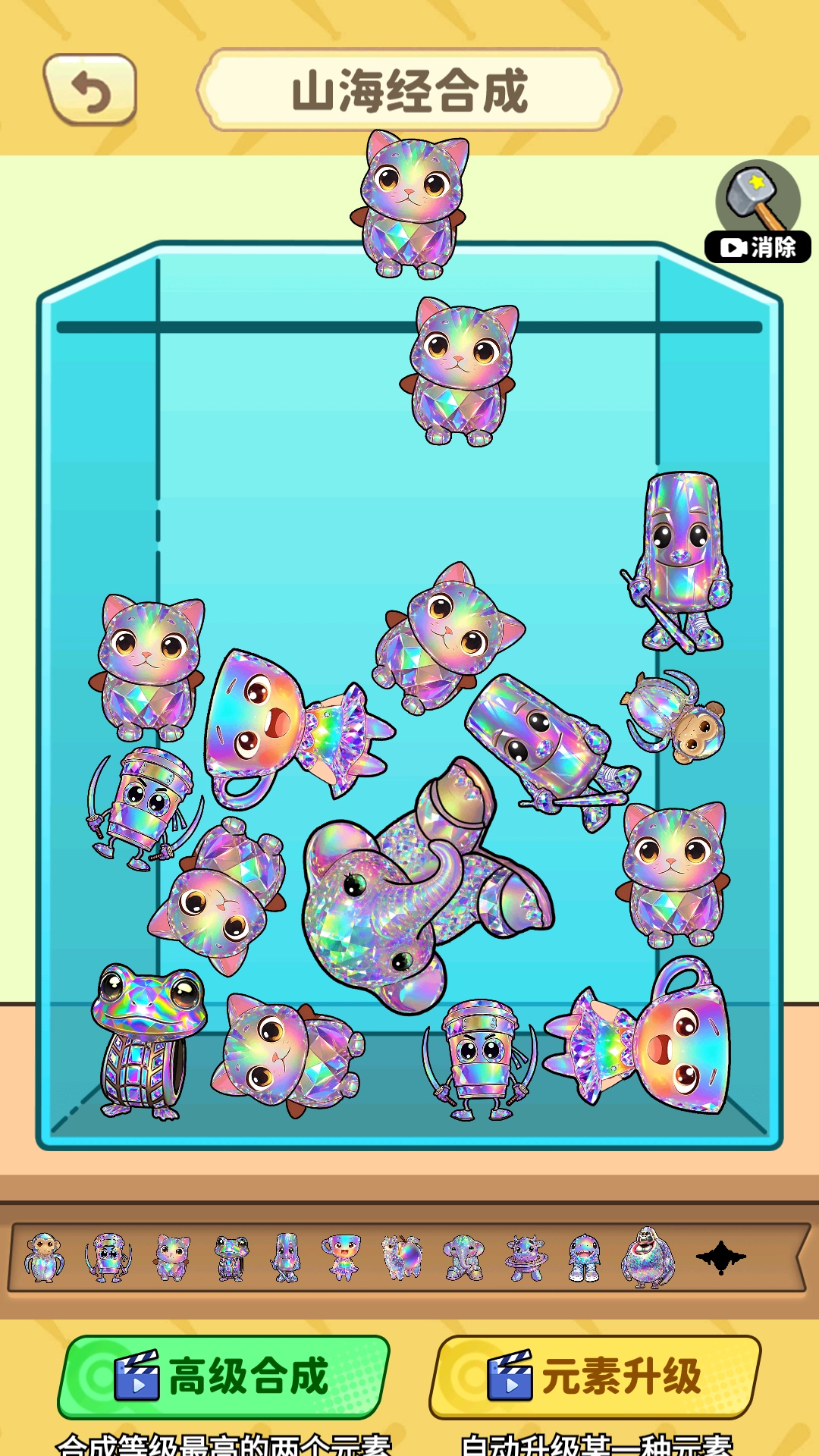 2、最终目标是合成为传说中的神兽,这些神兽拥有强大的能力和震撼的外形,是合成之路的终极成果。