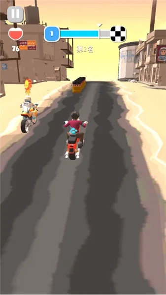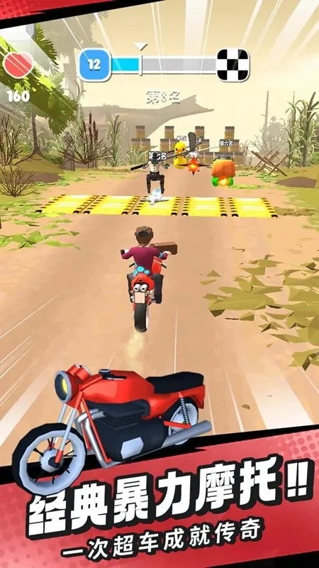 1、《刺激摩托》是赛车游戏,玩家驾驶摩托在赛道奔驰,要攻击对手、躲避障碍,超越对手成冠军。