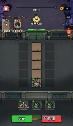 3、点击下方的战斗,以开始游戏,刷新获得防御塔,相同塔可合成更高等级;