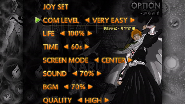 3、设置选项中可调节电脑等级、生命值、对战时间等参数。