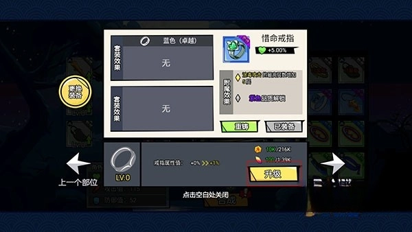 4、进行升级操作,点击右下角的【升级】按钮,就能提高装备的等级并增强其属性。