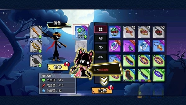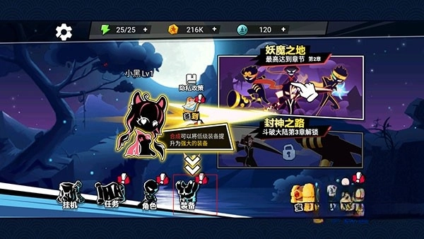 1、打开装备界面,点击主界面上的【装备】按钮,即可进入装备的管理与升级界面。
