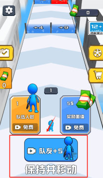 2、看到蓝队小人跑道上方的+3.5加成了吗?只要保持好队形、别让队员掉队,就能触发速度加成全力冲刺啦。