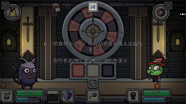 1在回合制战斗中,玩家需要转动轮盘来挑选攻击、防御或是运用特殊技能,每一个选择都起着关键作用。