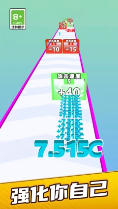 3在进行这项运动时,除了主体数值会不断增加,还能获取一些会跟随着主体的小数值,这些小数值会和主体数值合并在一起,一起朝着终点前进。