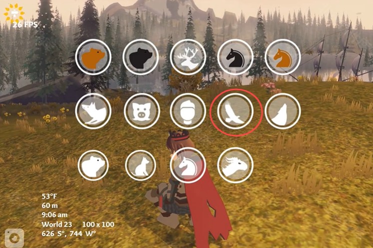 3、在选择要骑乘的动物,点击鹰的图标