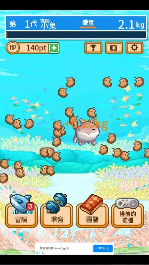 4、另外,你还能开启全新的冒险挑战,这会从某种角度为玩家增添更多游玩趣味。为了增强曼波鱼的存活能力,提升它的各项属性,你可以解锁新的物品,并且这些物品的数量也会有所增加。