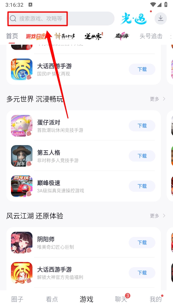 4、还可以点击上方的搜索框,输入游戏名进行搜素。