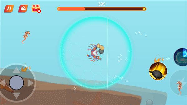 3通过操纵摇杆来控制螃蟹的移动方向,让它吞食水域中的食物,这样螃蟹的体型就会逐渐增大。