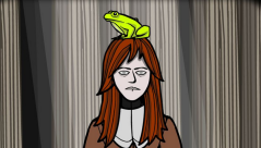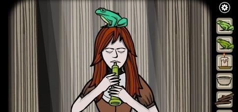 7、到树林2,将蛙笛交给妹妹。点击青蛙会看到青蛙鸣叫的符号,点击妹妹的左右手她会吹出符号,通过点击左右手产生和青蛙鸣叫一样的符号,5次以后可以得到第三只青蛙,5次点击顺序分别为:①左左②右右③左左右左④右左右左右右⑤左右左右左左右。