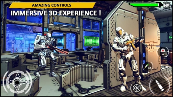 3在第三人称视角下操控角色,手持先进科技打造的枪械,与智能机器人敌人展开一场充满速度与精准度的激烈枪战,感受子弹横飞、胜负瞬息万变的紧张对抗氛围。