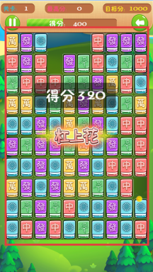 3、持续消除麻将,使牌阵持续变化,一旦得分达成目标分,即可顺利通关,开启下一关。