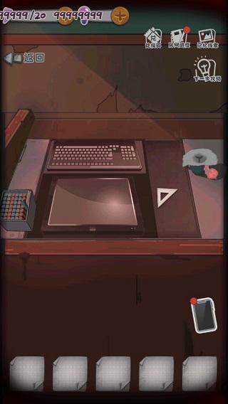 2在右侧桌内找到文具盒,使用物品栏中的别针开启它,盒内的线索碎片可供查看,同时取走里面的空白纸条。