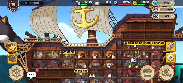 3这款游戏有个特别的设定:玩家手下的喵星人角色,等级提升不靠打副本攒经验,而是通过船上的“训练场”建筑来培养。训练场的等级越高,喵星人能达到的等级上限就越高,开宝箱得到的装备等级也会跟着水涨船高。
