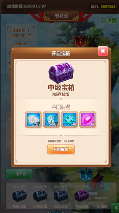 竞技场宝箱里的经验奖励相当丰厚,只要挑战其他玩家获胜就能拿到宝箱,而且宝箱品质越高,能获取的经验就越丰厚呢。赶紧去和其他玩家切磋较量,一决高下吧~