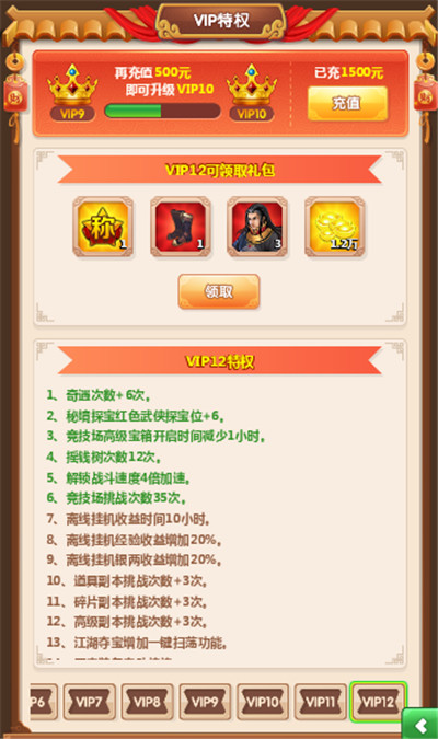 离线挂机是获取主角经验最轻松的方式之一,由于它能持续积累经验,VIP等级的重要性就凸显出来了——VIP等级越高,离线挂机获得的经验加成也就越多。