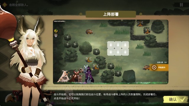 1、在游戏战斗前可自由调整角色位置,根据战斗人数上限合理安排站位。部署完成后,点击按钮便可开启战斗流程。