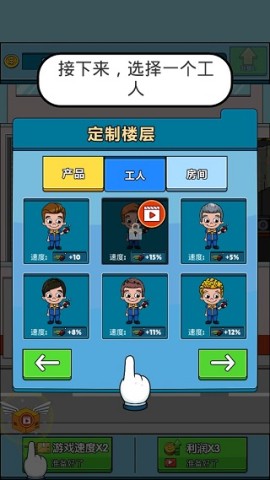 在这里你可以自主挑选各楼层的生产品类,规划生产步骤。一旦选定生产模式,就需要着手招募工人,推进产品制造,再通过科学规划房间布局,保障整个生产链条的顺畅运行。不同的产品、工人与房间都具备独特的特性,挑选适配的特性,能够更有效地提高生产效率,优化产品品质。