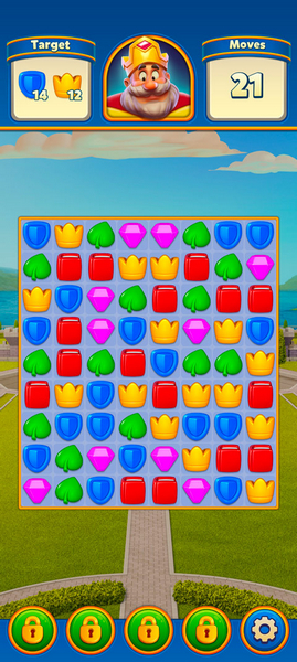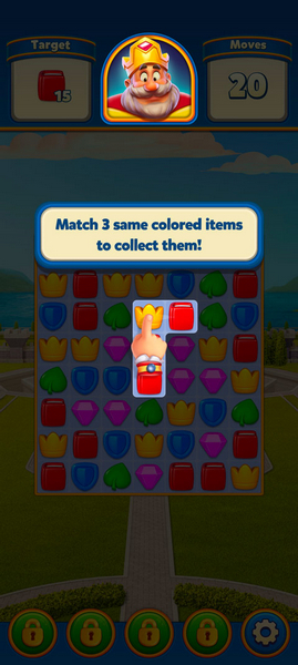 Royal Match游戏官方版也被叫做皇家比赛,它融合了经典三消玩法与独特的剧情内容,以“装饰城堡”为驱动力,玩家扮演宫廷侍从的角色,任务是帮助国王罗伯特(King Robert)修复并装饰他破败的皇家城堡。通关的方式是挑战一个个精心设计的三消关卡,通过消除匹配来收集星星、金币和特殊道具,从而获得装饰资源,一步步将城堡的各个房间(如王座厅、花园、卧室、厨房等)恢复到昔日的辉煌。