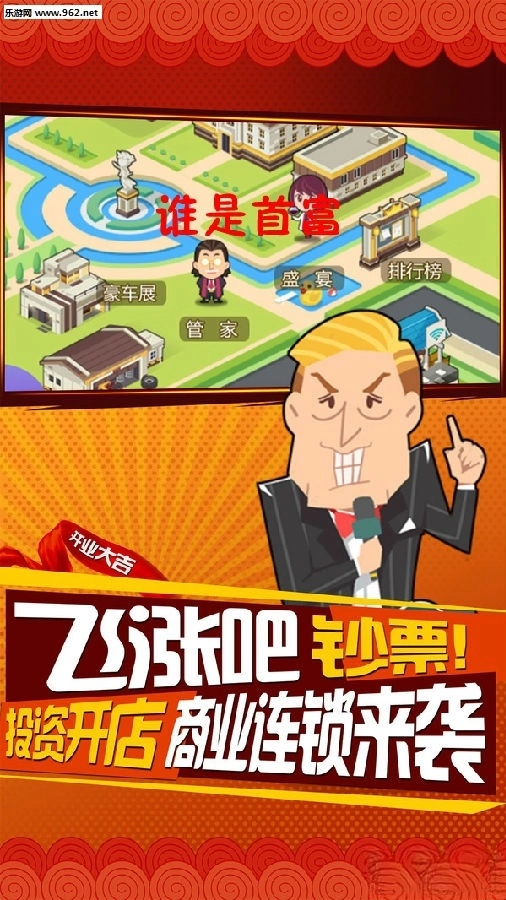 谁是首富游戏是一款万众瞩目的经营模拟休闲游戏,在游戏中玩家就会是一个小老板,通过自己不断地努力,不断地经营自己的公司,招募更多的员工,从一个普通人开始白手起家,创业经营,成为城市首富,在游戏中玩家就会是一个小老板,通过自己不断地努力,不断地经营自己的公司。