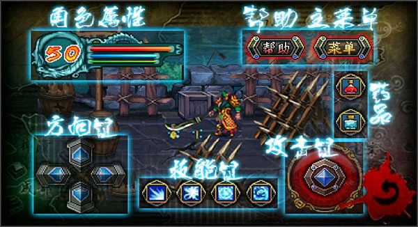 2、战斗采用虚拟摇杆控制移动,右侧按键释放普攻和技能