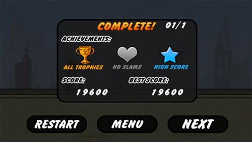 1. 游戏得分由玩家的特技得分与移动距离共同决定,因此取得高分依然是很有价值的事。 2. 滑动的速度会逐渐加快,玩家需要具备足够的反应能力才能避开障碍物。