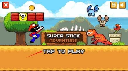 1进入游戏启动页面后,点击界面上的“TAP-TO-PLAY”按钮,即可开启超级火柴人的冒险篇章,随后点击屏幕就能正式进入游戏世界。