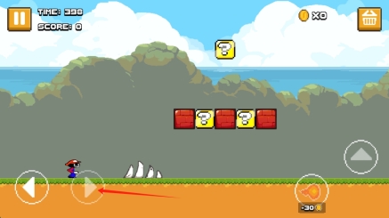 3、在关卡界面中,通过点击操作来控制角色移动,让角色跳跃并撞击带有问号的方块,同时避开尖刺障碍,以此推动关卡向前进展。