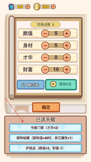 1、确认已选天赋如书香门第等后,点击确定进入互动环节。
