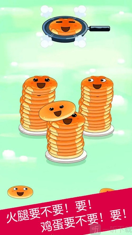2. 简单易上手,玩家只需操控Q萌可爱的煎饼,让它们逐个稳稳落在盘子上,同时避免掉落即可。