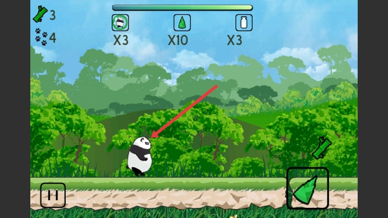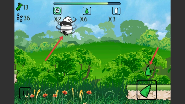 2、控制熊猫移动,收集沿途的竹子,留意上方的道具数量,合理规划行进路线,避开障碍物,借助场景中的元素来推进关卡进度。